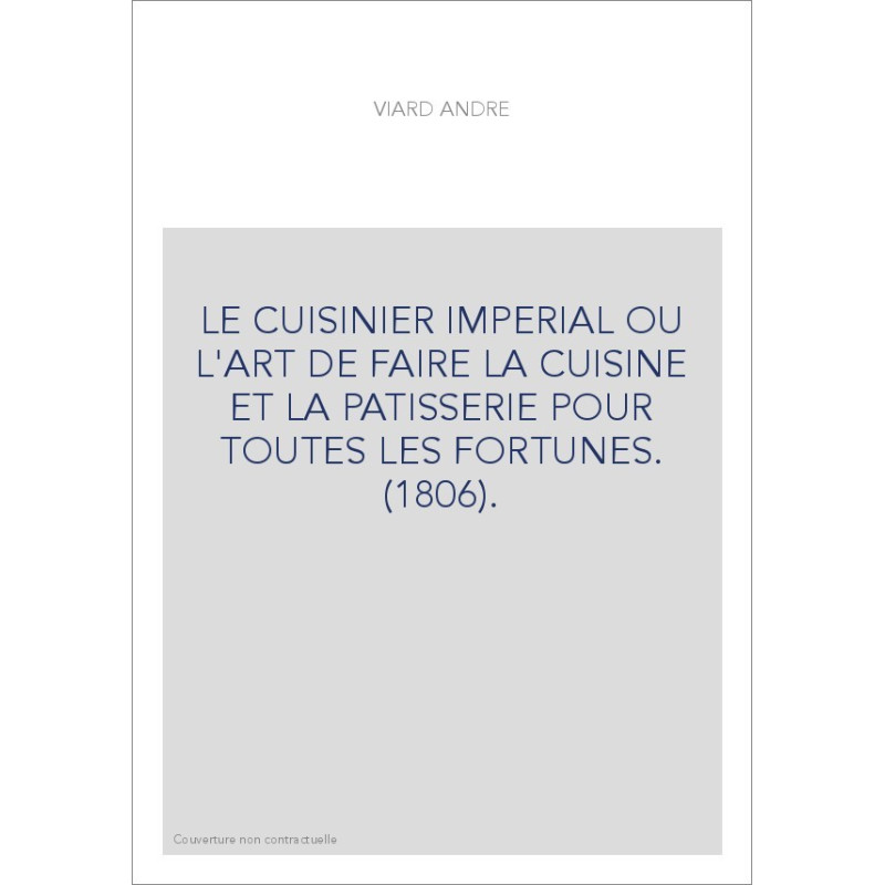 LE CUISINIER IMPERIAL OU L'ART DE FAIRE LA CUISINE ET LA PATISSERIE POUR TOUTES LES FORTUNES. (1806).