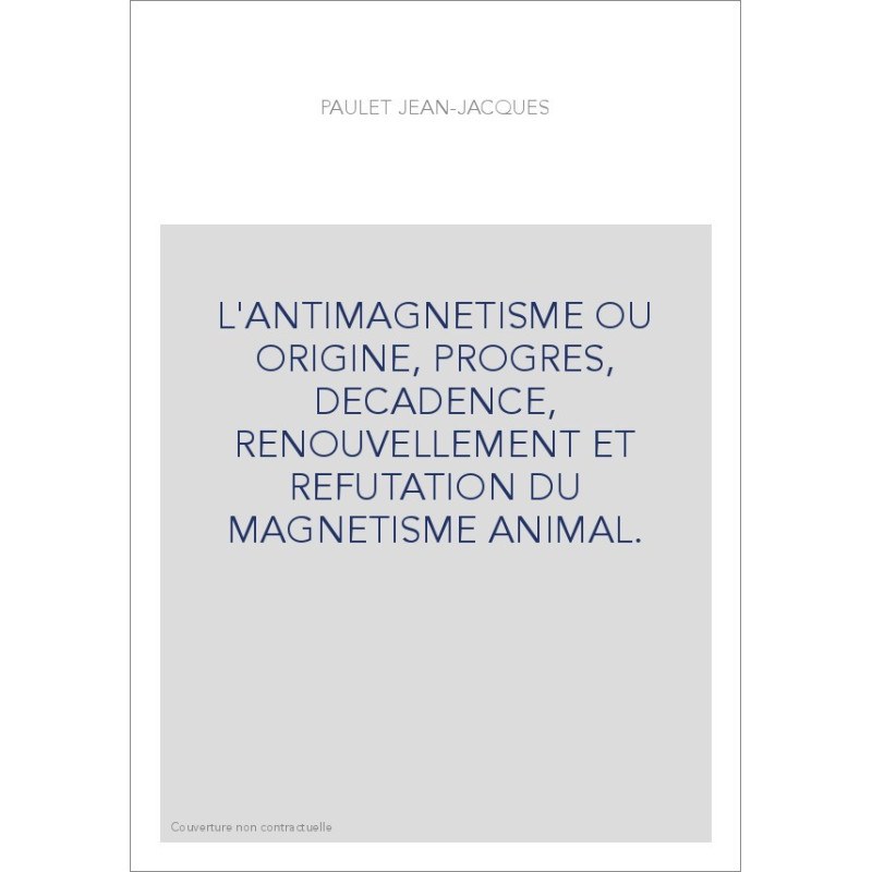 L'ANTIMAGNETISME OU ORIGINE, PROGRES, DECADENCE, RENOUVELLEMENT ET REFUTATION DU MAGNETISME ANIMAL.