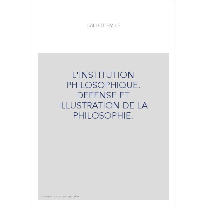 L'INSTITUTION PHILOSOPHIQUE. DEFENSE ET ILLUSTRATION DE LA PHILOSOPHIE.