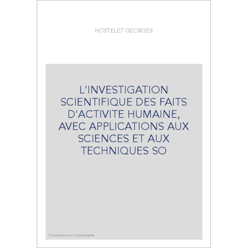 L'INVESTIGATION SCIENTIFIQUE DES FAITS D'ACTIVITE HUMAINE, AVEC APPLICATIONS AUX SCIENCES ET AUX TECHNIQUES