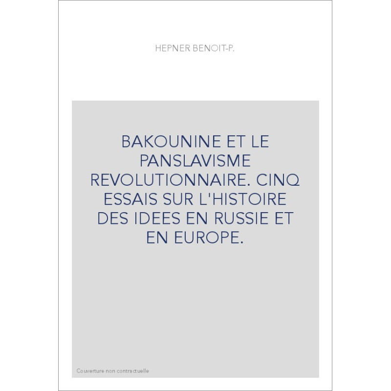 BAKOUNINE ET LE PANSLAVISME REVOLUTIONNAIRE. CINQ ESSAIS SUR L'HISTOIRE DES IDEES EN RUSSIE ET EN EUROPE.