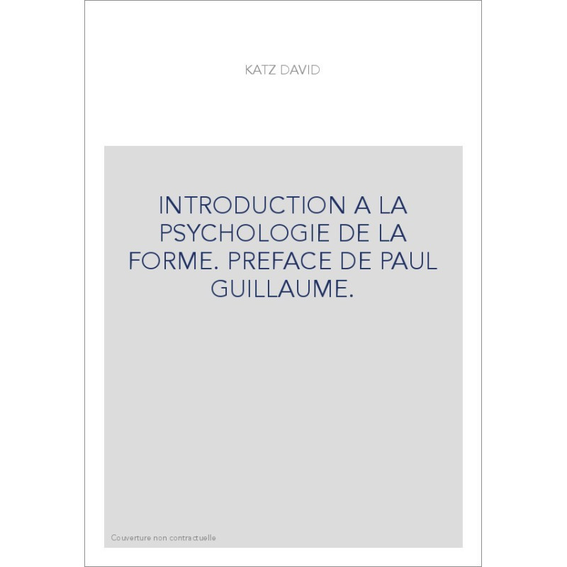 INTRODUCTION A LA PSYCHOLOGIE DE LA FORME. PREFACE DE PAUL GUILLAUME.