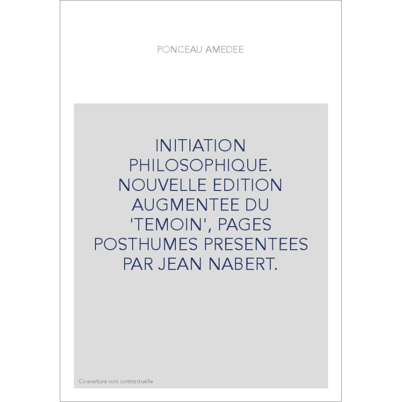 INITIATION PHILOSOPHIQUE. NOUVELLE EDITION AUGMENTEE DU 'TEMOIN', PAGES POSTHUMES PRESENTEES PAR JEAN NABERT