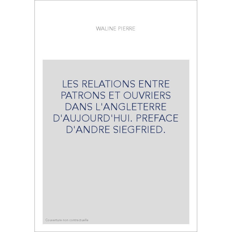 LES RELATIONS ENTRE PATRONS ET OUVRIERS DANS L'ANGLETERRE D'AUJOURD'HUI. PREFACE D'ANDRE SIEGFRIED.