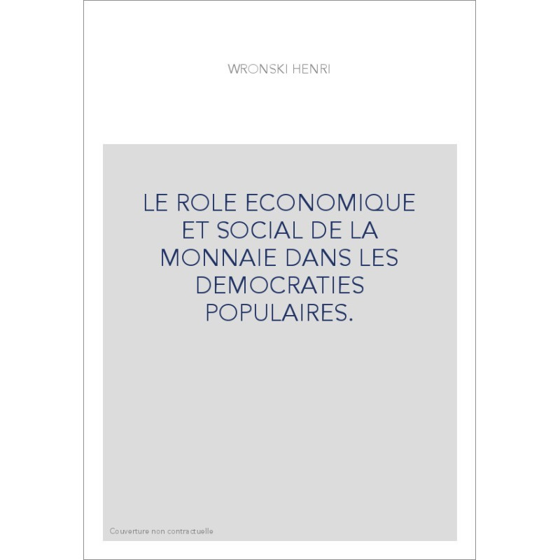 LE ROLE ECONOMIQUE ET SOCIAL DE LA MONNAIE DANS LES DEMOCRATIES POPULAIRES.