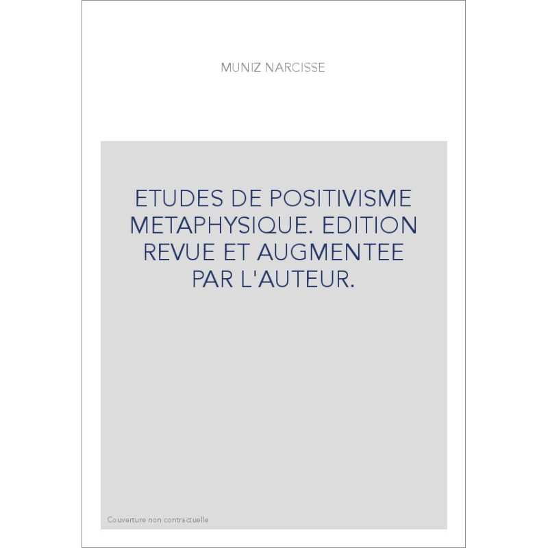 ETUDES DE POSITIVISME METAPHYSIQUE. EDITION REVUE ET AUGMENTEE PAR L'AUTEUR.