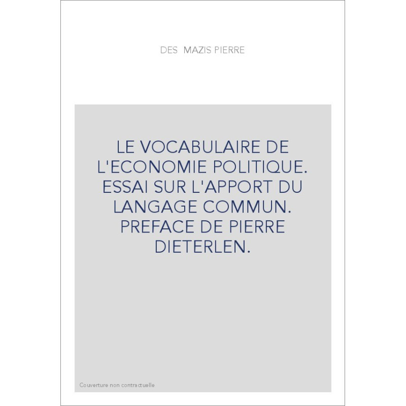 LE VOCABULAIRE DE L'ECONOMIE POLITIQUE. ESSAI SUR L'APPORT DU LANGAGE COMMUN. PREFACE DE PIERRE DIETERLEN.