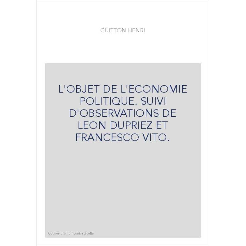 L'OBJET DE L'ECONOMIE POLITIQUE. SUIVI D'OBSERVATIONS DE LEON DUPRIEZ ET FRANCESCO VITO.