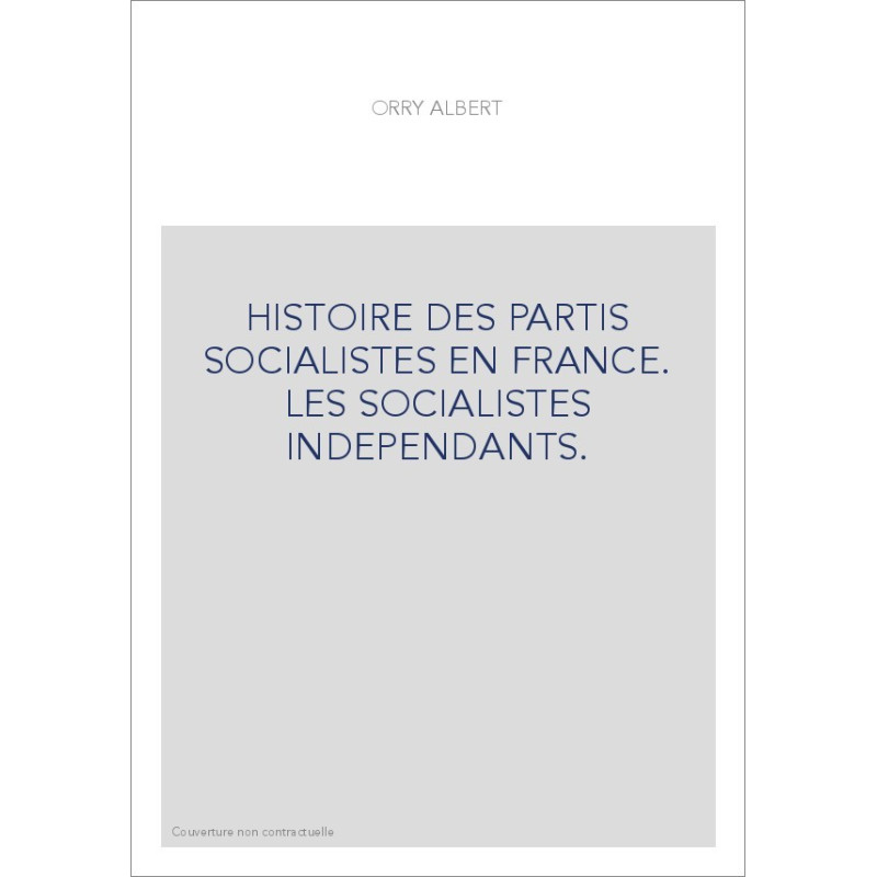 HISTOIRE DES PARTIS SOCIALISTES EN FRANCE. LES SOCIALISTES INDEPENDANTS.