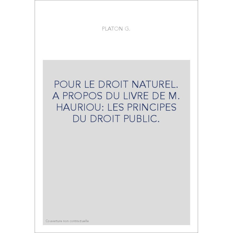 POUR LE DROIT NATUREL. A PROPOS DU LIVRE DE M. HAURIOU: LES PRINCIPES DU DROIT PUBLIC.