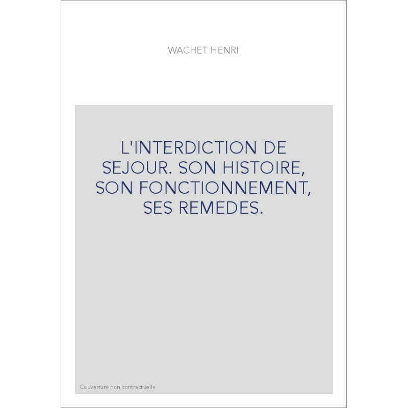 L'INTERDICTION DE SEJOUR. SON HISTOIRE, SON FONCTIONNEMENT, SES REMEDES.