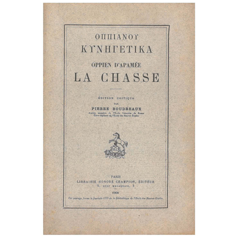 Oppien d’Apamée, dit aussi Oppien de Syrie, vivait en Syrie, province romaine, au début du IIIe siècle apr. J.-C. Son poème La chasse est aussi connu sous le nom des Cynégétiques.