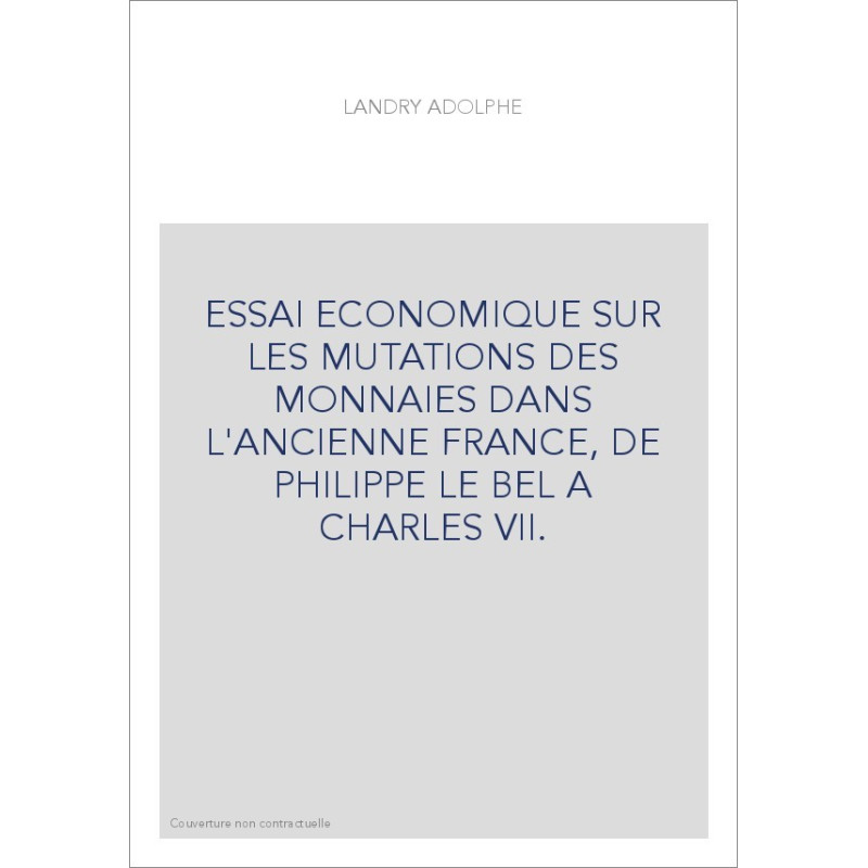 ESSAI ECONOMIQUE SUR LES MUTATIONS DES MONNAIES DANS L'ANCIENNE FRANCE, DE PHILIPPE LE BEL A CHARLES VII.