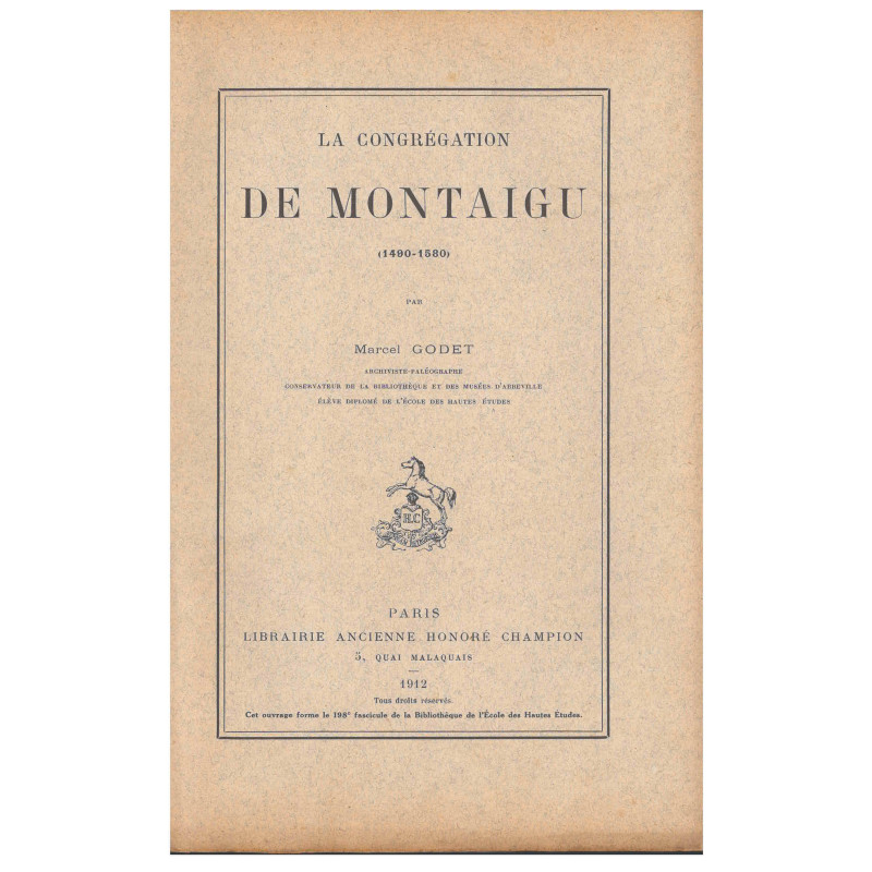 « Étude de la congrégation de Montaigu en tant que témoin irrécusable et caractéristique de la pré-réforme catholique. Nombreuses pièces justificatives. »