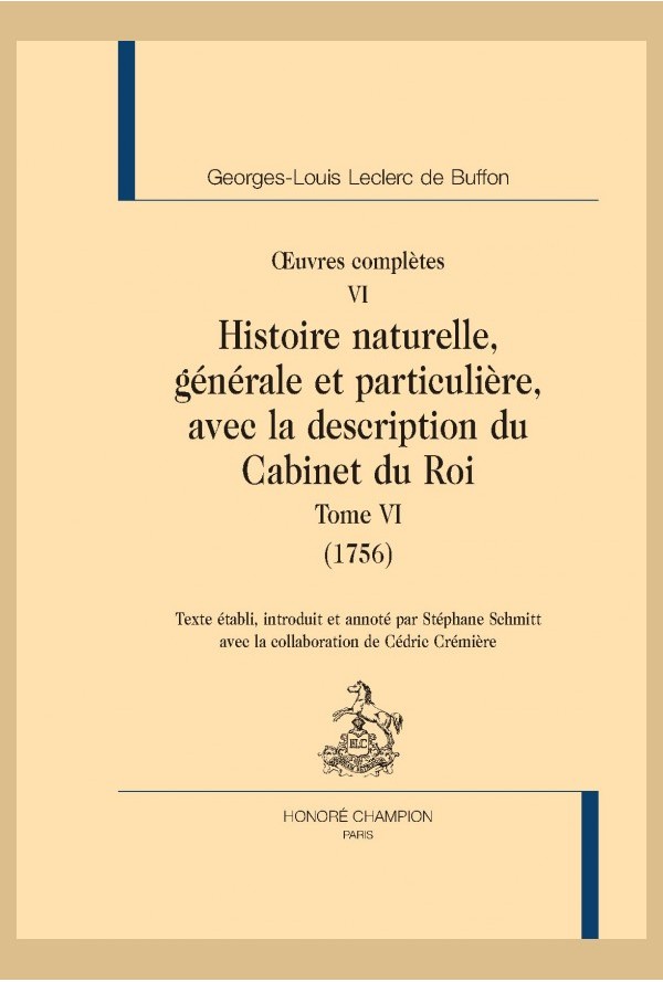 OEUVRES COMPLETES VOL VI. HISTOIRE NATURELLE, GENERALE ET PARTICULIERE AVEC LA DESCRIPTION DU CABINET DU ROI