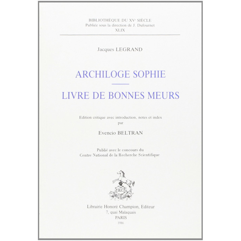 | Editeur | HONORE CHAMPION |