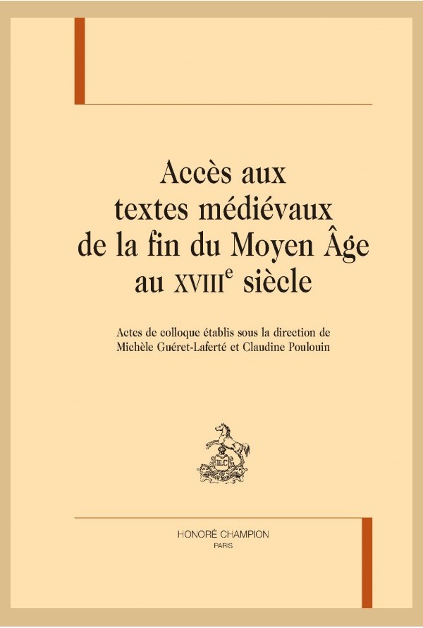 L'ACCES AUX TEXTES MEDIEVAUX DE LA FIN DU MOYEN ÂGE AU XVIIIE SIÈCLE