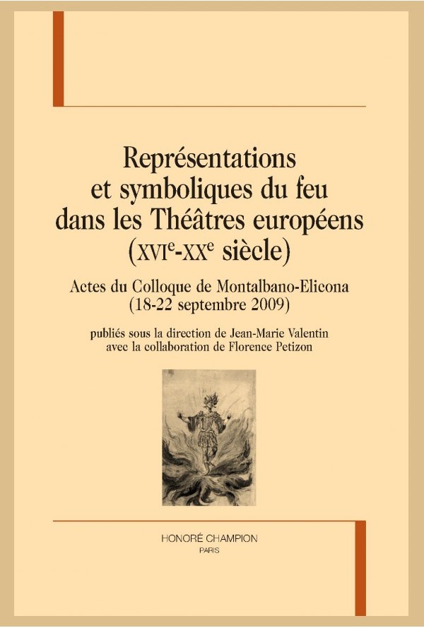 Parmi les quatre éléments, le feu occupe, dans la mythologie (Prométhée), la religion et le théâtre parlé et chanté une place singulière, due aussi, dans la représentation dramatique, à son efficacité spectaculaire. Partant de la nature ambivalente que lui reconnaissent les traditions interprétatives (Bachelard !), les intervenants au Colloque de Montalbano Elicona (Sicile, 2009) en ont examiné les figures majeures depuis le XVIe siècle. Du Baroque religieux à l’extrême pointe des avant-gardes de la fin du XXe siècle, le feu se manifeste dans ses multiples métamorphoses. Destructeur ou régénérateur, il est partout – en Italie, en Espagne, en Pologne, en Angleterre, en Hongrie, en Roumanie, en France, dans le Saint Empire… – intimement lié aux passions et aspirations humaines ainsi qu’à l’essence vivante, spirituelle et matérielle, du monde de la scène.