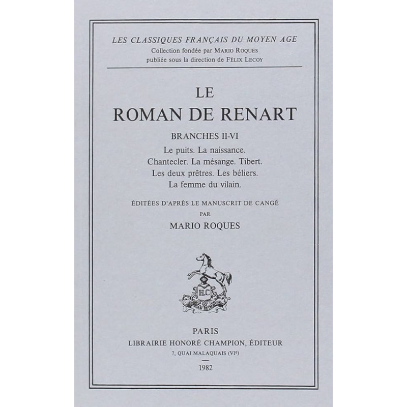 LE ROMAN DE RENART. BRANCHES II-VI. LE PUITS. LA NAISSANCE. CHANTECLERC. LA MESANGE. TIBERT