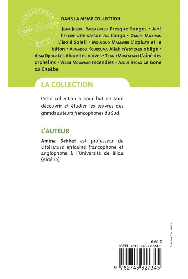 Amina Bekkat est professeur de Littérature africaine francophone et anglophone à l’Université de Blida (Algérie).