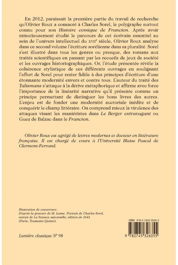 qu’Olivier Roux a consacré à Charles Sorel, le polygraphe surtout