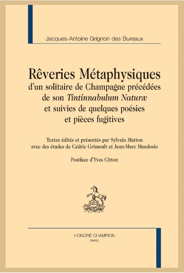 RÊVERIES MÉTAPHYSIQUES D’UN SOLITAIRE DE CHAMPAGNE PRÉCÉDÉES DE SON TINTINNABULUM NATURÆ