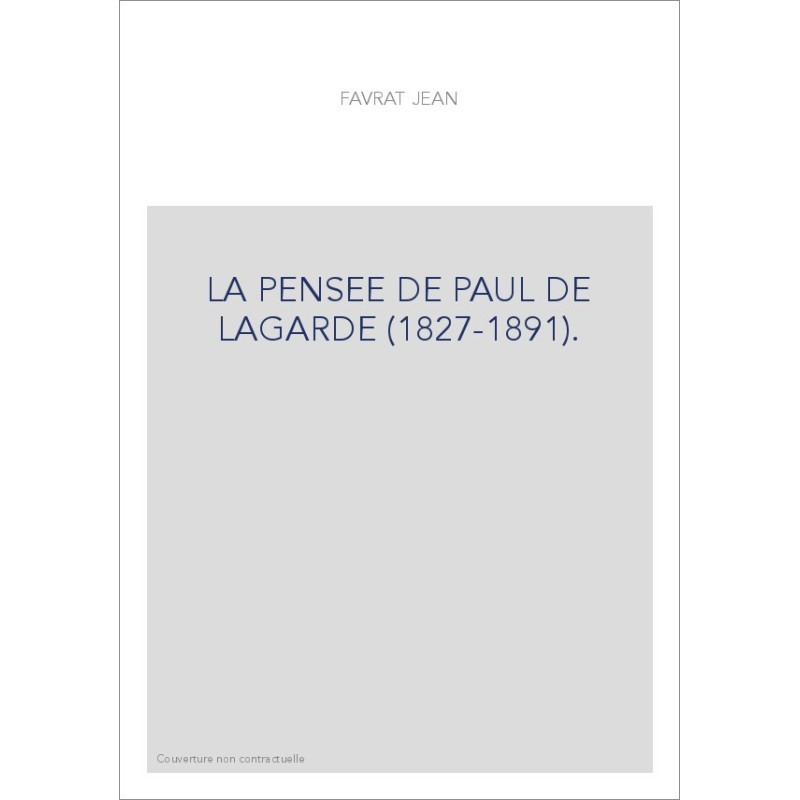 LA PENSEE DE PAUL DE LAGARDE (1827-1891).
