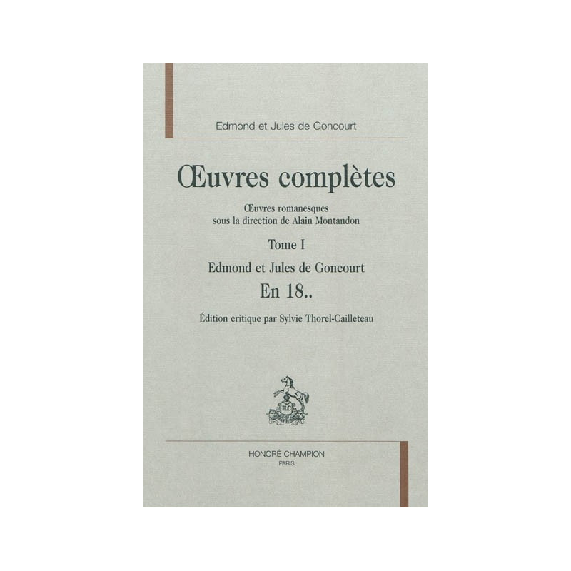 OEUVRES COMPLÈTES. OEUVRES ROMANESQUES SOUS LA DIRECTION DE ALAIN MONTANDON. TOME 1. EN 18..