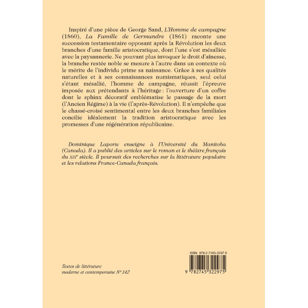 Dominique Laporte enseigne à l’Université du Manitoba (Canada). Il a publié des articles sur le roman et le théâtre français du XIXe siècle. Il poursuit des recherches sur la littérature populaire et les relations France-Canada français.