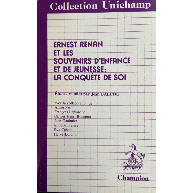 Les propos de cet ouvrage est d’être une sorte de guide. Il s’agit de montrer que les Souvenirs sont, à la fois, un projet, une tragédie et un bilan, et qu’ils expriment comment le jeune Renan a, sur les ruines de son être, construit tout un destin. Tout ici, en effet, collabore à ce que suggère le sous-titre : La conquête de soi.