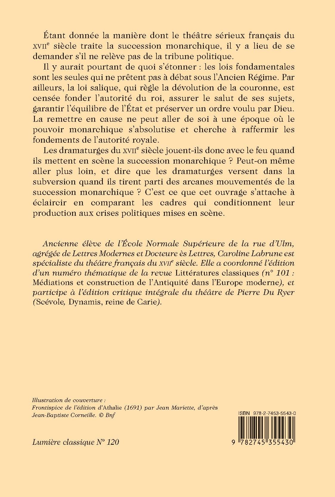 Les dramaturges du XVIIe siècle jouent-ils donc avec le feu quand ils mettent en scène la succession monarchique ? Peut-on même aller plus loin, et dire que les dramaturges versent dans la subversion quand ils tirent parti des arcanes mouvementés de la succession monarchique ? C’est ce que cet ouvrage s’attache à éclaircir en comparant les cadres qui conditionnent leur production aux crises politiques mises en scène.