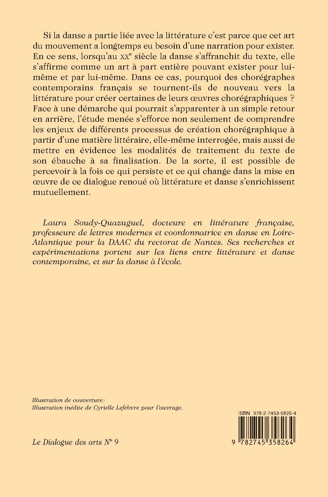 Si la danse a partie liée avec la littérature c’est parce que cet art du mouvement a longtemps eu besoin d’une narration pour exister. En ce sens, lorsqu’au XXe siècle la danse s’affranchit du texte, elle s’affirme comme un art à part entière pouvant exister pour lui-même et par lui-même. Dans ce cas, pourquoi des chorégraphes contemporains français se tournent-ils de nouveau vers la littérature pour créer certaines de leurs œuvres chorégraphiques ? Face à une démarche qui pourrait s’apparenter à un simple retour en arrière, l’étude menée s’efforce non seulement de comprendre les enjeux de différents processus de création chorégraphique à partir d’une matière littéraire, elle-même interrogée, mais aussi de mettre en évidence les modalités de traitement du texte de son ébauche à sa finalisation. De la sorte, il est possible de percevoir à la fois ce qui persiste et ce qui change dans la mise en œuvre de ce dialogue renoué où littérature et danse s’enrichissent mutuellement.