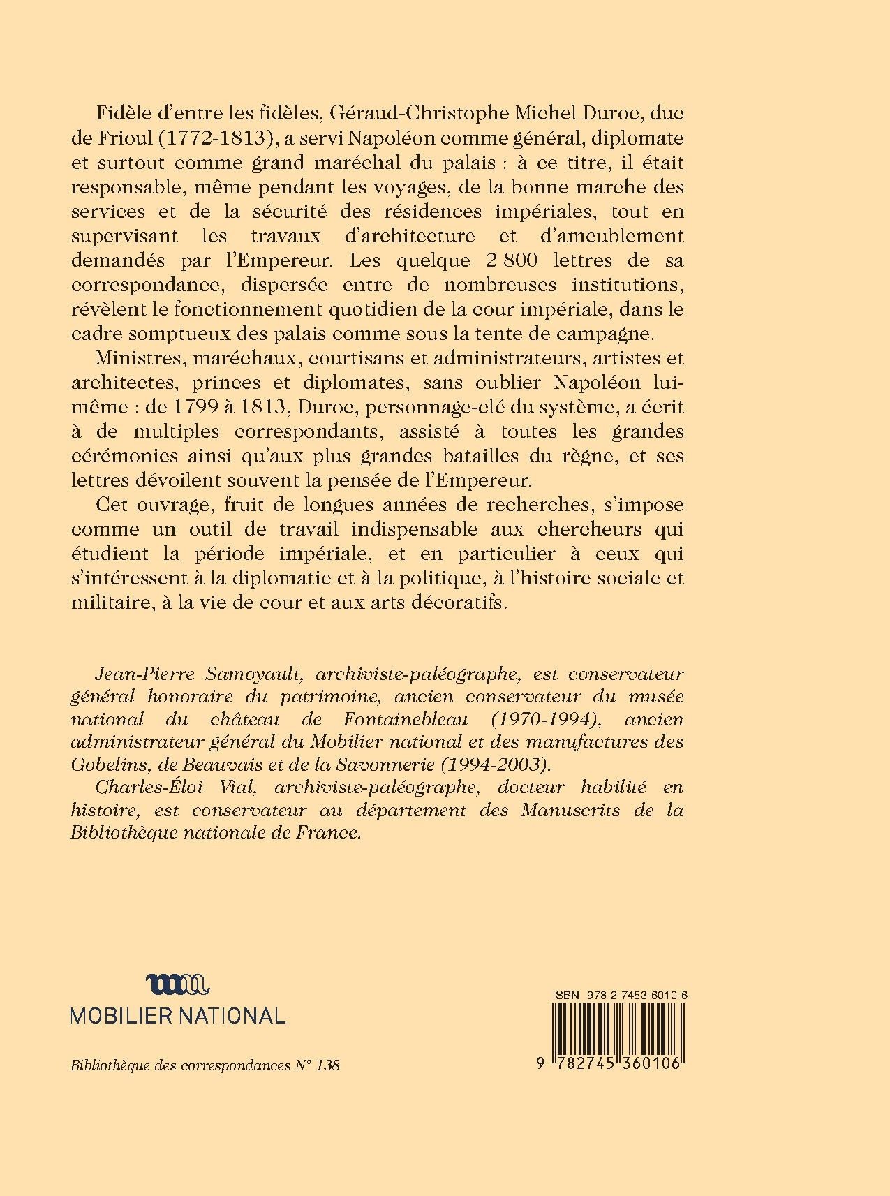 Ministres, maréchaux, courtisans et administrateurs, artistes et architectes, princes et diplomates, sans oublier Napoléon lui-même : de 1799 à 1813, Duroc, personnage-clé du système, a écrit à de multiples correspondants, assisté à toutes les grandes cérémonies ainsi qu’aux plus grandes batailles du règne, et ses lettres dévoilent souvent la pensée de l’Empereur.