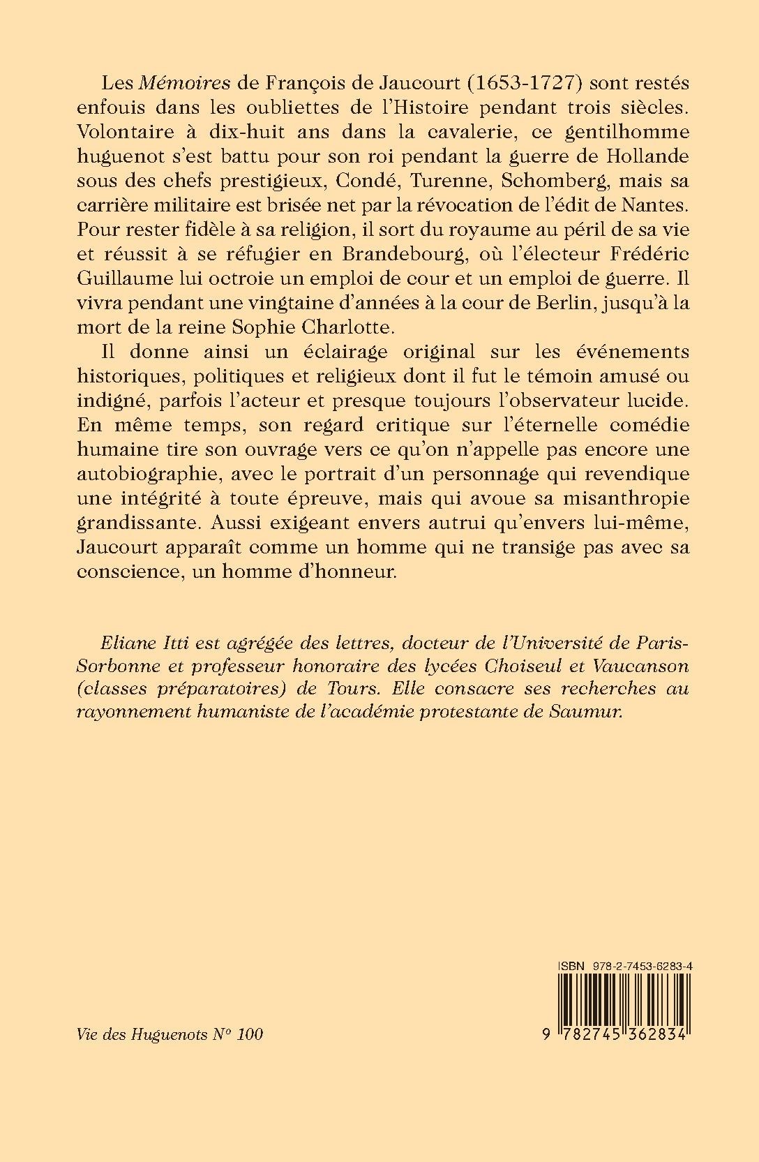 Les Mémoires de François de Jaucourt (1653-1727) sont restés enfouis dans les oubliettes de l’Histoire pendant trois siècles. Volontaire à dix-huit ans dans la cavalerie, ce gentilhomme huguenot s’est battu pour son roi pendant la guerre de Hollande sous des chefs prestigieux, Condé, Turenne, Schomberg, mais sa carrière militaire est brisée net par la révocation de l’édit de Nantes. Pour rester fidèle à sa religion, il sort du royaume au péril de sa vie et réussit à se réfugier en Brandebourg, où l’électeur Frédéric Guillaume lui octroie un emploi de cour et un emploi de guerre.