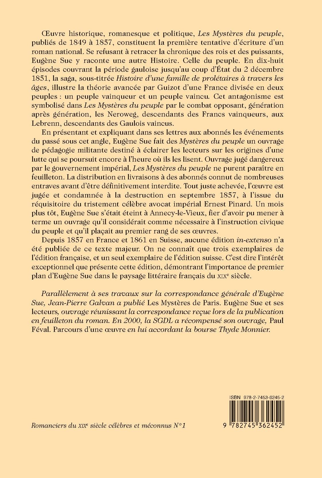 Œuvre historique, romanesque et politique, Les Mystères du peuple, publiés de 1849 à 1857, constituent la première tentative d’écriture d’un roman national. Se refusant à retracer la chronique des rois et des puissants, Eugène Sue y raconte une autre Histoire. Celle du peuple. En dix-huit épisodes couvrant la période gauloise jusqu’au coup d’État du 2 décembre 1851, la saga, sous-titrée Histoire d’une famille de prolétaires à travers les âges, illustre la théorie avancée par Guizot d’une France divisée en deux peuples : un peuple vainqueur et un peuple vaincu. Cet antagonisme est symbolisé dans Les Mystères du peuple par le combat opposant, génération après génération, les Neroweg, descendants des Francs vainqueurs, aux Lebrenn, descendants des Gaulois vaincus.