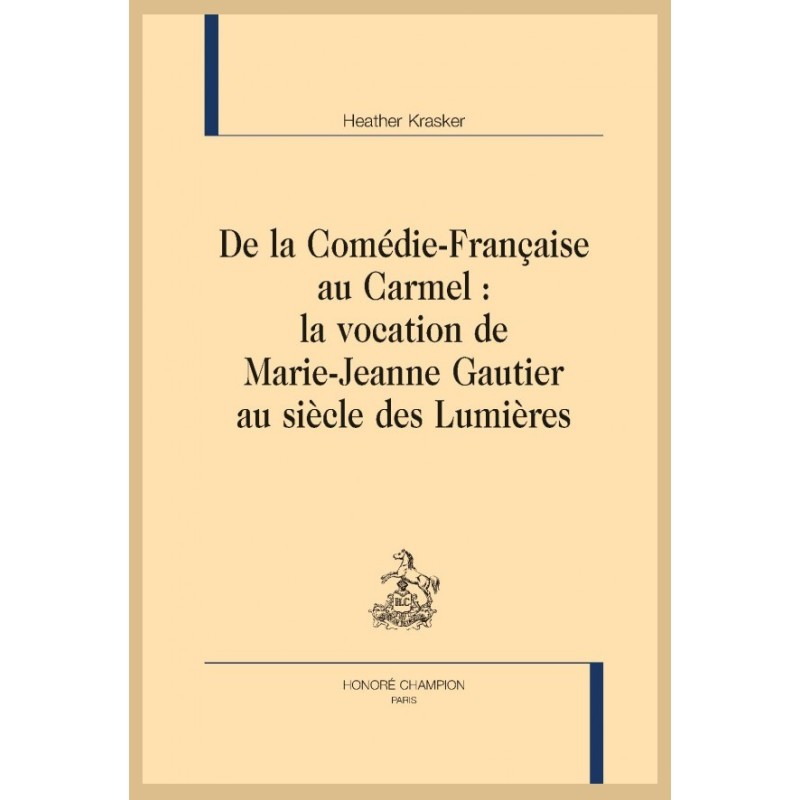 Rutilante actrice de la Comédie-Française à l’époque du Régent, concurrente d’Adrienne Lecouvreur, Mademoiselle Gautier (1692-1757) donne la réplique à son amant présumé, Quinault-Dufresne. Omniprésente sur les planches, cette libertine se convertit soudainement, quitte le théâtre puis le monde, pour finalement entrer chez les religieuses qu’elle avait « toujours haïes mortellement ». Mais quel est le motif de cette vocation étonnante ? Fervente carmélite lyonnaise, Marie-Jeanne-Augustine de la Miséricorde, qui endosse la triade conceptuelle ange-vierge épouse, devient une femme anti-Lumières. Elle s’exprime avec des accents de prophète à travers des cantiques qu’elle compose sur des airs de vaudevilles que l’on entendait à la Foire. Pénitente acharnée, elle rappelle à l’ordre ses sœurs jansénistes, correspond avec la reine Marie Leszczynska et des académiciens, sans laisser indifférents les membres des salons littéraires ; le récit de sa conversion se retrouve dans les papiers de Charles Duclos et, curieusement, une satire érotique s’en fait l’écho. Symétrique inverse de la protagoniste de La Religieuse de Diderot, cette femme artiste vient renouveler notre regard sur le siècle des Lumières.