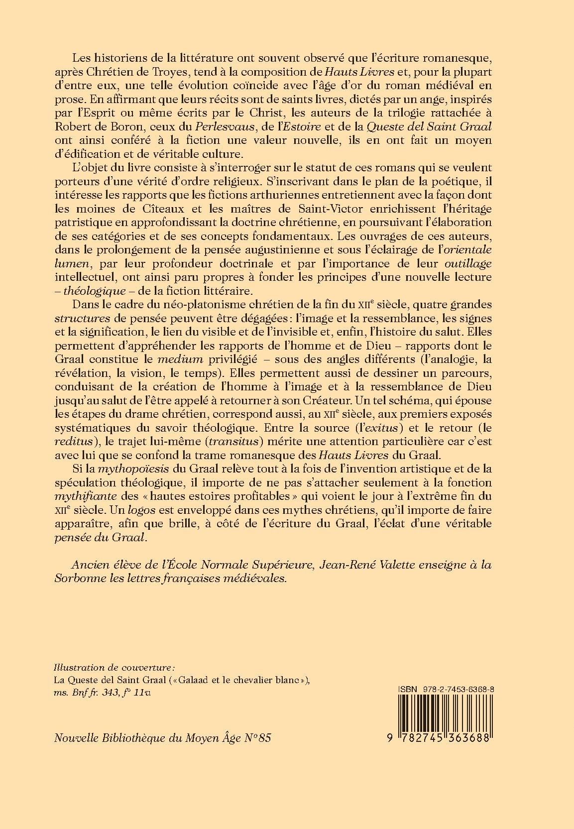 Les historiens de la littérature ont souvent observé que l’écriture romanesque, après Chrétien de Troyes, tend à la composition de Hauts Livres et, pour la plupart d’entre eux, une telle évolution coïncide avec l’âge d’or du roman médiéval en prose. En affirmant que leurs récits sont de saints livres, dictés par un ange, inspirés par l’Esprit ou même écrits par le Christ, les auteurs de la trilogie rattachée à Robert de Boron, ceux du Perlesvaus, de l’Estoire et de la Queste del Saint Graal ont ainsi conféré à la fiction une valeur nouvelle, ils en ont fait un moyen d’édification et de véritable culture.