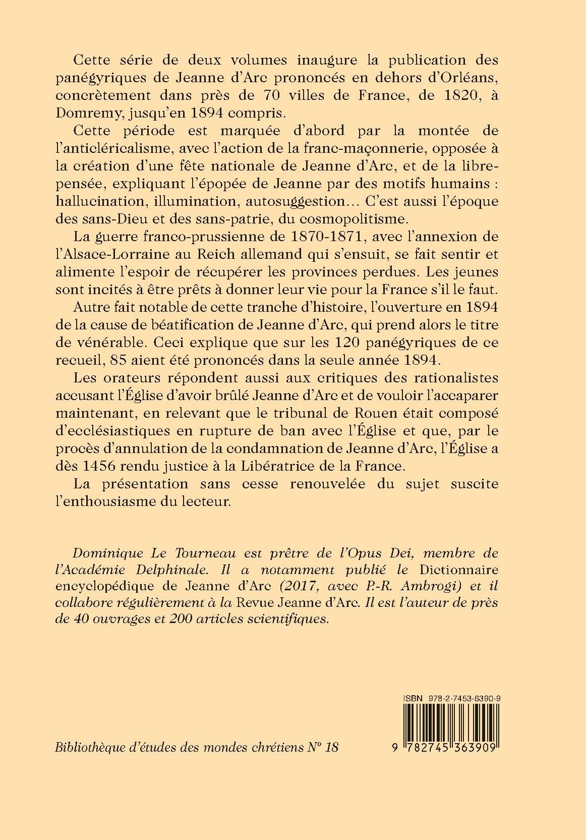 Cette série de deux volumes inaugure la publication des panégyriques de Jeanne d’Arc prononcés en dehors d’Orléans, concrètement dans près de 70 villes de France, de 1820, à Domremy, jusqu’en 1894 compris.
