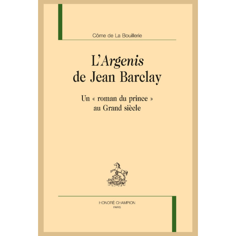 Célèbre en son temps, l’Argenis de Jean Barclay (1621), roman de teinte antique, de langue latine et de grand retentissement en France où il fut publié, n’est pas seulement un creuset des cultures européennes, anciennes et contemporaines de sa publication. Dans son essai, Côme de La Bouillerie analyse la poétique originale de ce « roman du prince » pour mieux éclairer l’influence déterminante et méconnue qu’il aura exercée sur les romanciers français de la première moitié du XVIIe siècle. Cette approche originale d’une œuvre rarement analysée la situe ainsi à la convergence entre esthétique, philosophie, morale et politique.