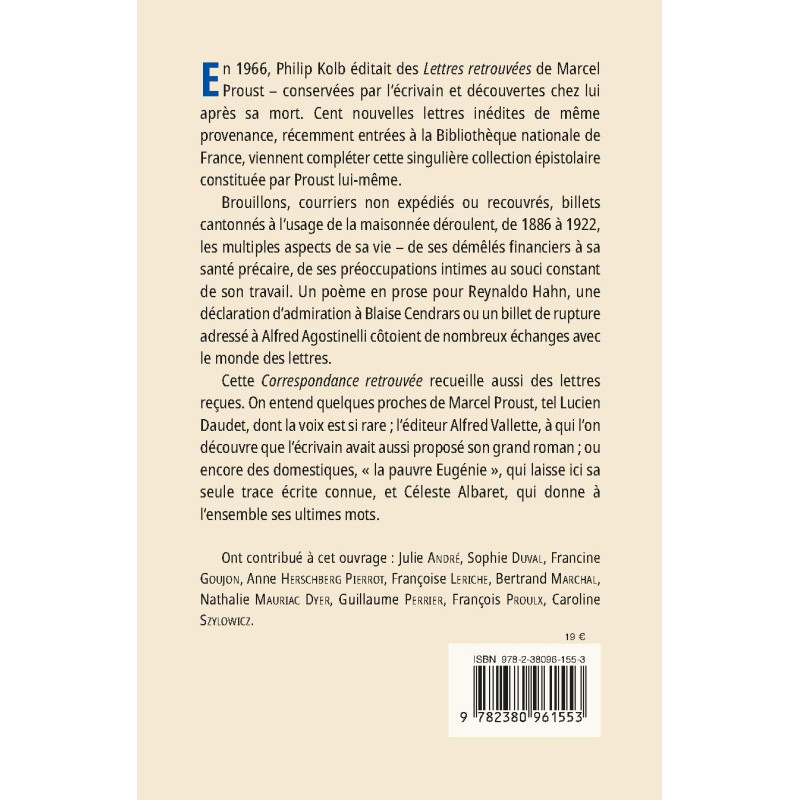 En 1966, Philip Kolb éditait des Lettres retrouvées de Marcel Proust – conservées par l’écrivain et découvertes chez lui après sa mort. Cent nouvelles lettres inédites de même provenance, récemment entrées à la Bibliothèque nationale de France, viennent compléter cette singulière collection épistolaire constituée par Proust lui-même.