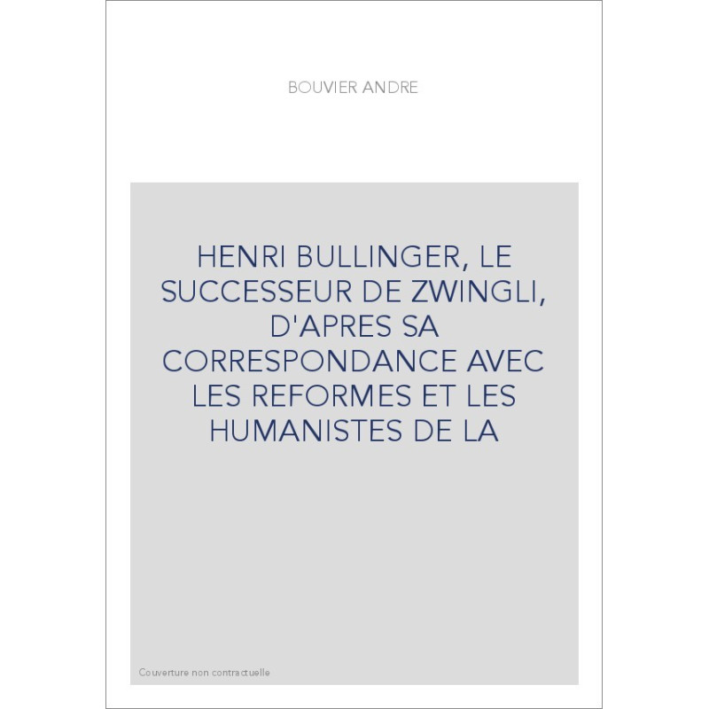 HENRI BULLINGER, LE SUCCESSEUR DE ZWINGLI, D'APRES SA CORRESPONDANCE AVEC LES REFORMES ET LES HUMANISTES DE L