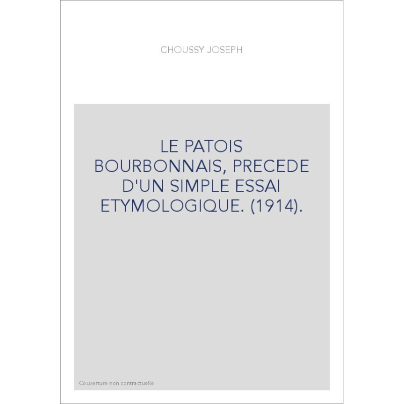 LE PATOIS BOURBONNAIS, PRECEDE D'UN SIMPLE ESSAI ETYMOLOGIQUE. (1914).