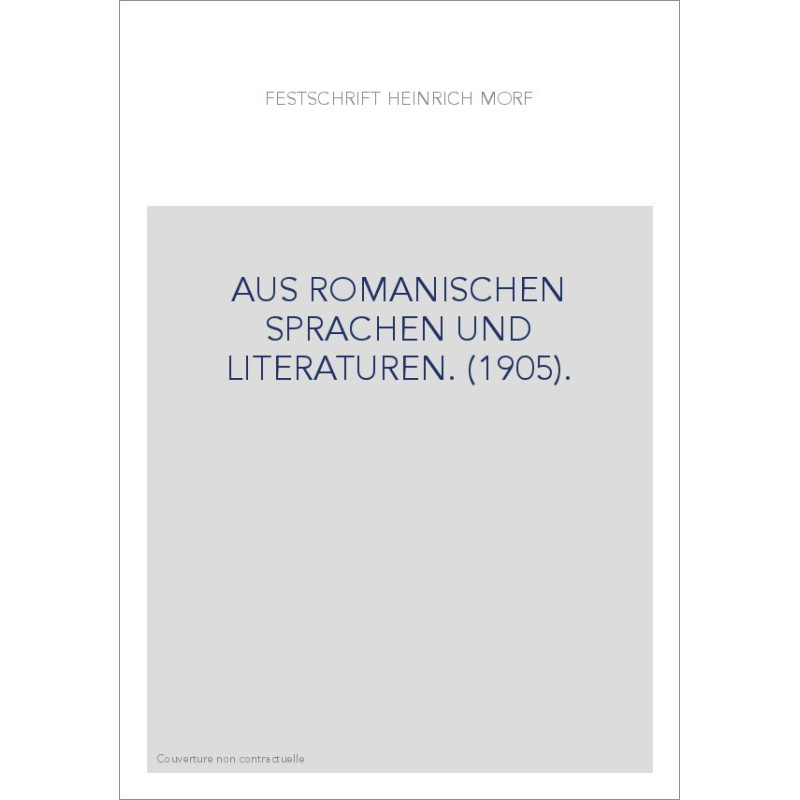 FESTSCHRIFT FUR HEINRICH MORF. AUS ROMANISCHEN SPRACHEN UND LITERATUREN. (1905).