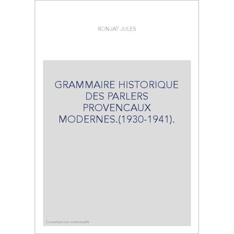 GRAMMAIRE HISTORIQUE DES PARLERS PROVENCAUX MODERNES.(1930-1941).