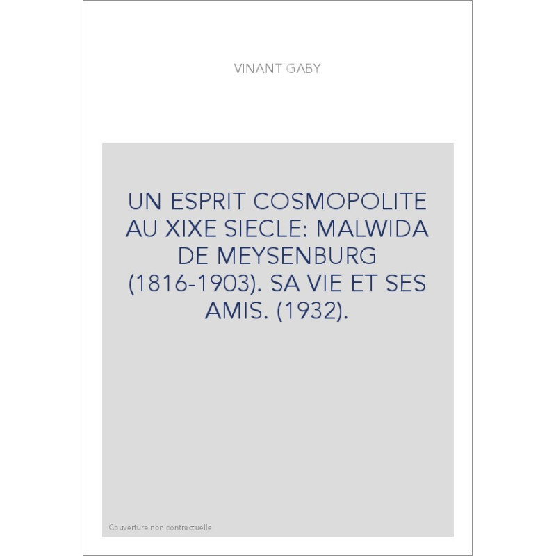 UN ESPRIT COSMOPOLITE AU XIXE SIECLE: MALWIDA DE MEYSENBURG (1816-1903). SA VIE ET SES AMIS. (1932).