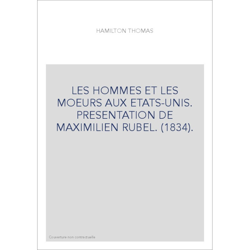 LES HOMMES ET LES MOEURS AUX ETATS-UNIS. PRESENTATION DE MAXIMILIEN RUBEL. (1834).