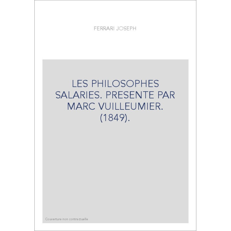LES PHILOSOPHES SALARIES. PRESENTE PAR MARC VUILLEUMIER. (1849).