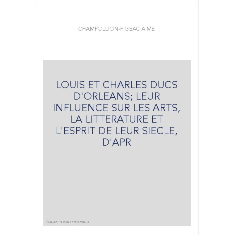 LOUIS ET CHARLES DUCS D'ORLEANS LEUR INFLUENCE SUR LES ARTS, LA LITTERATURE ET L'ESPRIT DE LEUR SIECLE, D'