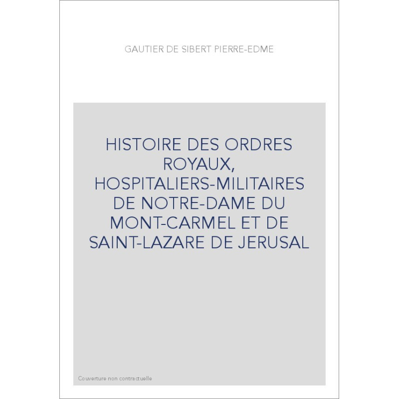 HISTOIRE DES ORDRES ROYAUX, HOSPITALIERS-MILITAIRES DE NOTRE-DAME DU MONT-CARMEL ET DE SAINT-LAZARE DE JERUSAL