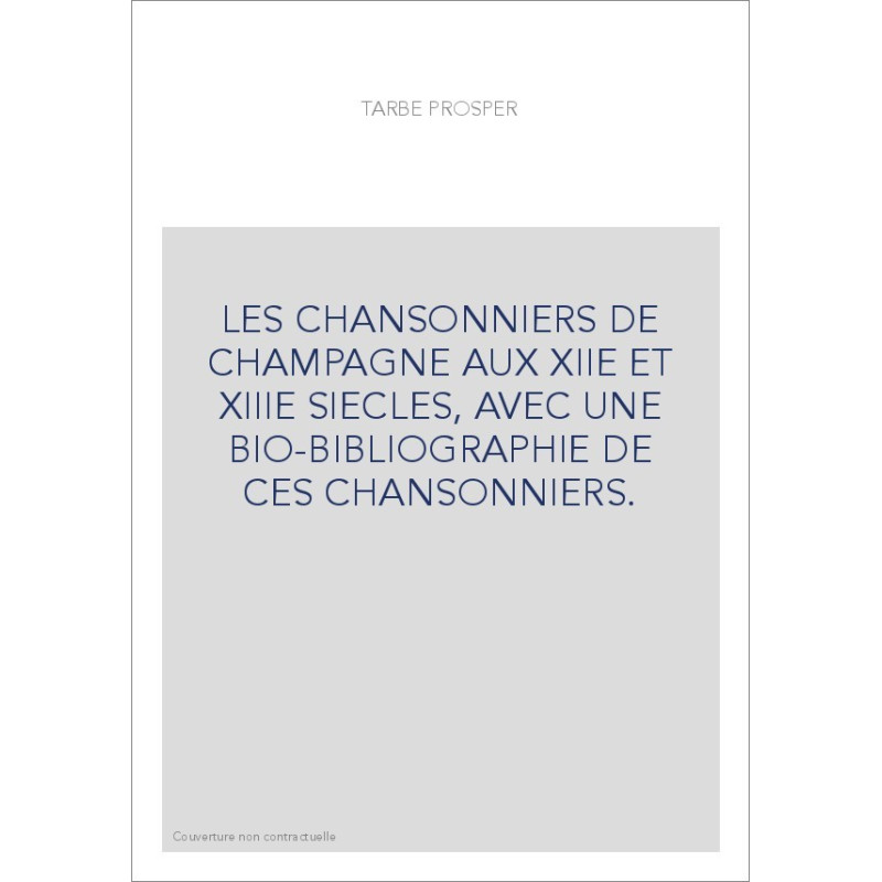 LES CHANSONNIERS DE CHAMPAGNE AUX XIIE ET XIIIE SIECLES, AVEC UNE BIO-BIBLIOGRAPHIE DE CES CHANSONNIERS.